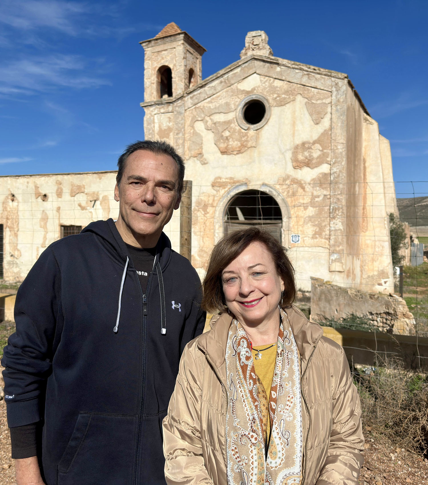 Foto: Maite Pérez, presidenta de Amigos de la Alcazaba con el autor de la entrevista Antonio Hermosa, vicepresidente de Amigos de Cabo de Gata-Níjar © Lola Aguilar