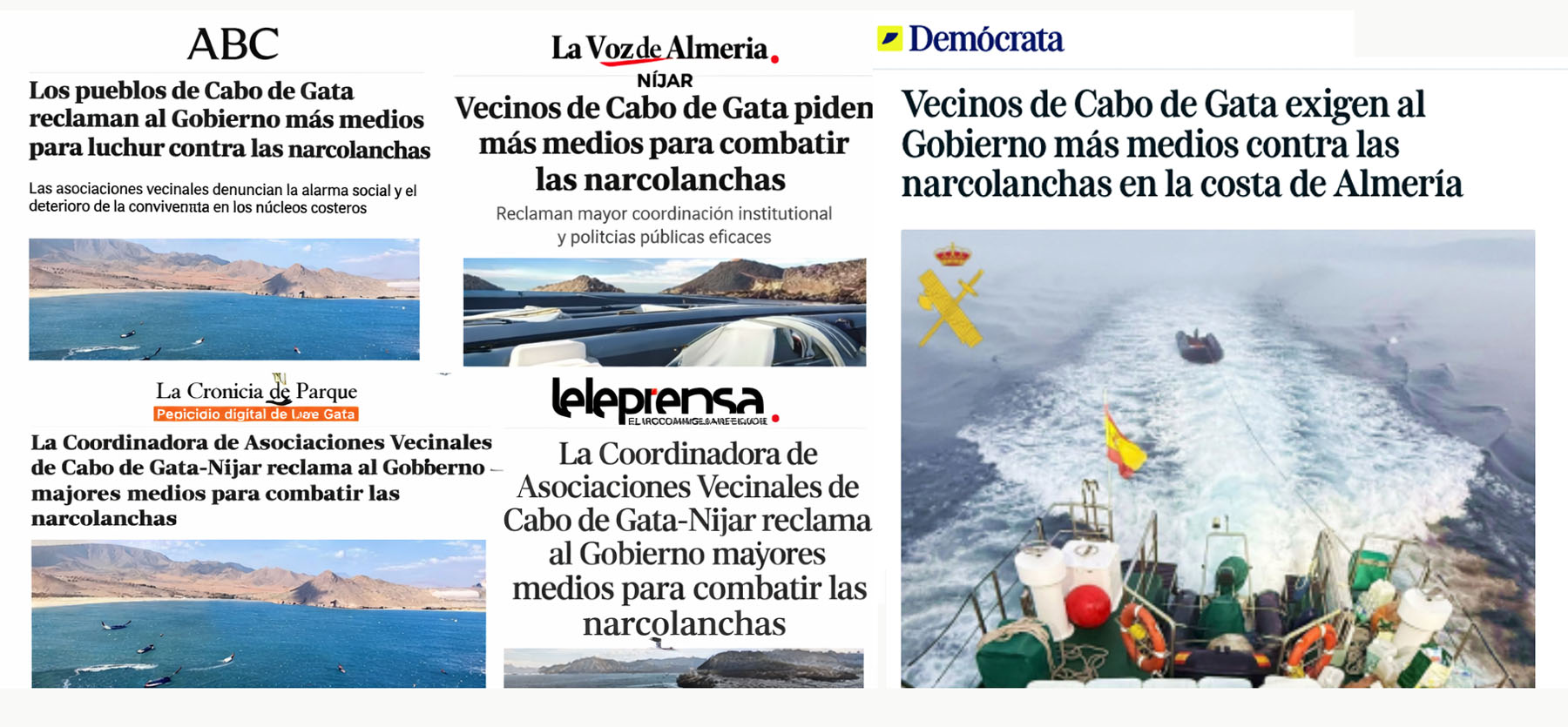 La Coordinadora de Asociaciones Vecinales de los Pueblos del Parque Natural Cabo de Gata-Níjar, plataforma que representa a doce colectivos locales junto a la Asociación Amigos del Parque, ha elevado una queja formal ante la Subdelegación del Gobierno en Almería ante la persistente presencia de narcolanchas en las aguas y calas del parque. Según los vecinos, la frecuencia y visibilidad de estas embarcaciones está generando inquietud entre residentes y visitantes, al tiempo que alimenta una percepción de inseguridad en los principales núcleos costeros.