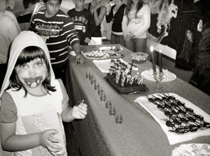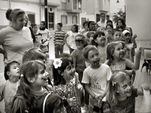 La fiesta comenzó en la biblioteca del barrio donde los niños pudieron disfrazarse y fueron pintados en un taller especial de Halloween 2010, un poco más tarde ya caracterizados la mayoría de los pequeños se dirijieron al Club Social donde les esperaba una terrorífica y suculenta sorpresa. Las madres del Ampa habían preparado una serie de horripilantes, pero muy sabrosos, platos cocinados especialmente para la noche. Platos como ojos en sangre, tarta halowiana, arañas de chocolate, etc que fueron entregados por la muerte en persona.